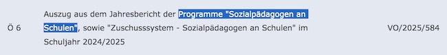 Im Bildungsausschuss wurde am 9. Oktober u.a. über den Jahresbericht des Programms „Sozialpädagogen an Schulen“ informiert. Dass vielerorts mehr als die bisherige sozialpädagogische Unterstützung benötigt wird, zeigen Rückmeldungen von Schulen. Hier ein Auszug aus der Ausschuss-Vorlage des Landkreises: – „Auch, wenn unser Ort vermeintlich ein idyllisches Bullerbü darstellt, sieht es hinter den Kulissen der Schule doch etwas anders aus. Wir würden uns sehr über eine Aufstockung der Schulsozialarbeit auf eine 35-Stunden-Stelle freuen. Es gibt dringende Bedarfe in der Einzelfallbegleitung, insbesondere da die Jugendämter und Therapieeinrichtungen derart überlastet sind, dass nicht alle in der Schule auffällig werdenden Kinder und Familien entsprechend versorgt werden können.“ – „Für unsere Schule ist die Arbeit der Schulsozialarbeit zu einer unverzichtbaren Ressource geworden. Traditionellerweise gelten wir nicht als „Problemschule“. Dennoch merken auch wir deutlich die veränderte Kindheit, die sich in den letzten Jahren entwickelt hat. Immer häufiger treten Fragen zur Erziehung auf, die von den Eltern nicht mehr oder nicht ausreichend übernommen werden können. Diese offenen Themen spiegeln sich dann im Verhalten der Schülerinnen und Schüler im Unterricht und im Ganztag wider. Hier wird die Expertise der Schulsozialarbeit dringend benötigt, um konflikthafte Situationen direkt vor Ort kindgerecht und sachgemäß zu lösen.“ – „Wir sehen an unserem Standort einen Mehrbedarf von bis zu 10 zusätzlichen Wochenstunden, die wir sehr gezielt und sinnvoll einsetzen könnten, um die Qualität der Begleitung und Unterstützung weiter aufrechtzuerhalten. Für uns steht fest: Auf die Arbeit der Schulsozialarbeit können wir nicht verzichten. Im Gegenteil – sie muss an allen Grundschulstandorten gestärkt und weiter ausgebaut werden, um den heutigen Herausforderungen gerecht zu werden.“ – „Im letzten Schuljahr nahmen die Aufgaben der Schulsozialarbeit rasant zu. Zu spüren ist eine zunehmende Gewaltbereitschaft unter den Kindern. Unser Wunsch sind 2 Vollzeitstellen.“