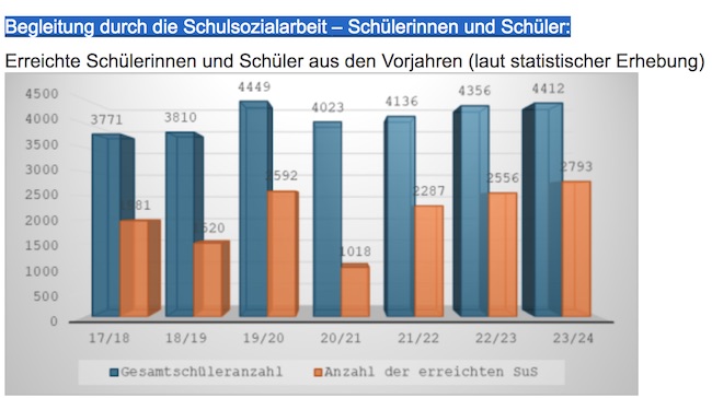 In der Vorlage des Landkreises zu lesen: „Der Landkreis Osnabrück sieht die Verantwortung für die Schulsozialarbeit und die Besetzung der entsprechenden Stellen in der Zuständigkeit des Landes Niedersachsen. Dieses finanziert diese Arbeit zwar an allen Schulformen, aber nicht in bedarfsgerechtem und ausreichendem Umfang“. Das Fazit des Landkreises: „Eine vollständige Abdeckung der Bedarfe an Schulsozialarbeit ist kurz- bis mittelfristig nicht realistisch. Es gibt keine Signale vom Land, dass von dort Ressourcen signifikant ausgeweitet werden.“