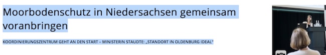 In Niedersachsen hat im April 2025 das „Niedersächsische Koordinierungszentrum Moorbodenschutz“ seine Arbeit aufgenommen. Es hat seinen Sitz in Oldenburg und wird landweit tätig sein. Quelle und ©: www.ml.niedersachsen.de/presse/pressemitteilungen/moorbodenschutz-in-niedersachsen-gemeinsam-voranbringen-241322.html